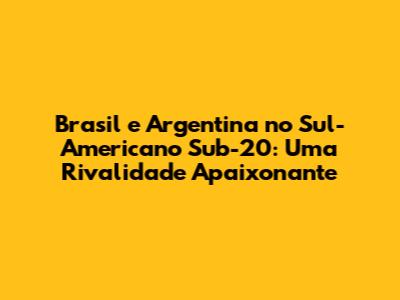 A rivalidade entre Brasil e Argentina no Sub-20 é uma das maiores do mundo, e a cada edição do torneio, essa disputa se renova, alimentando a paixão e a admiração dos torcedores. O futebol sul-americano agradece a essa rivalidade, que engrandece o esporte e proporciona momentos inesquecíveis.